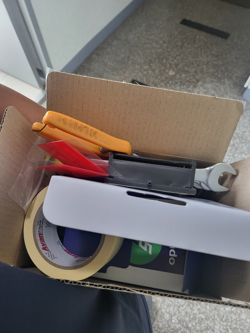 택배로 받은 만도 애프터블로우 필요한 양면테이프와 각 도구들