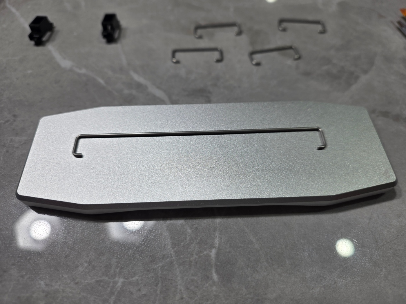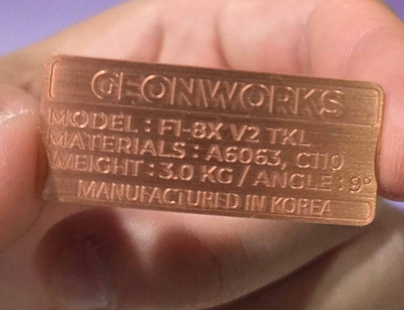 별도로 온 지온웍스 로고 각인 엠블럼을 부착 해줍니다 키보드 하부 발판도 장착 해줍니다